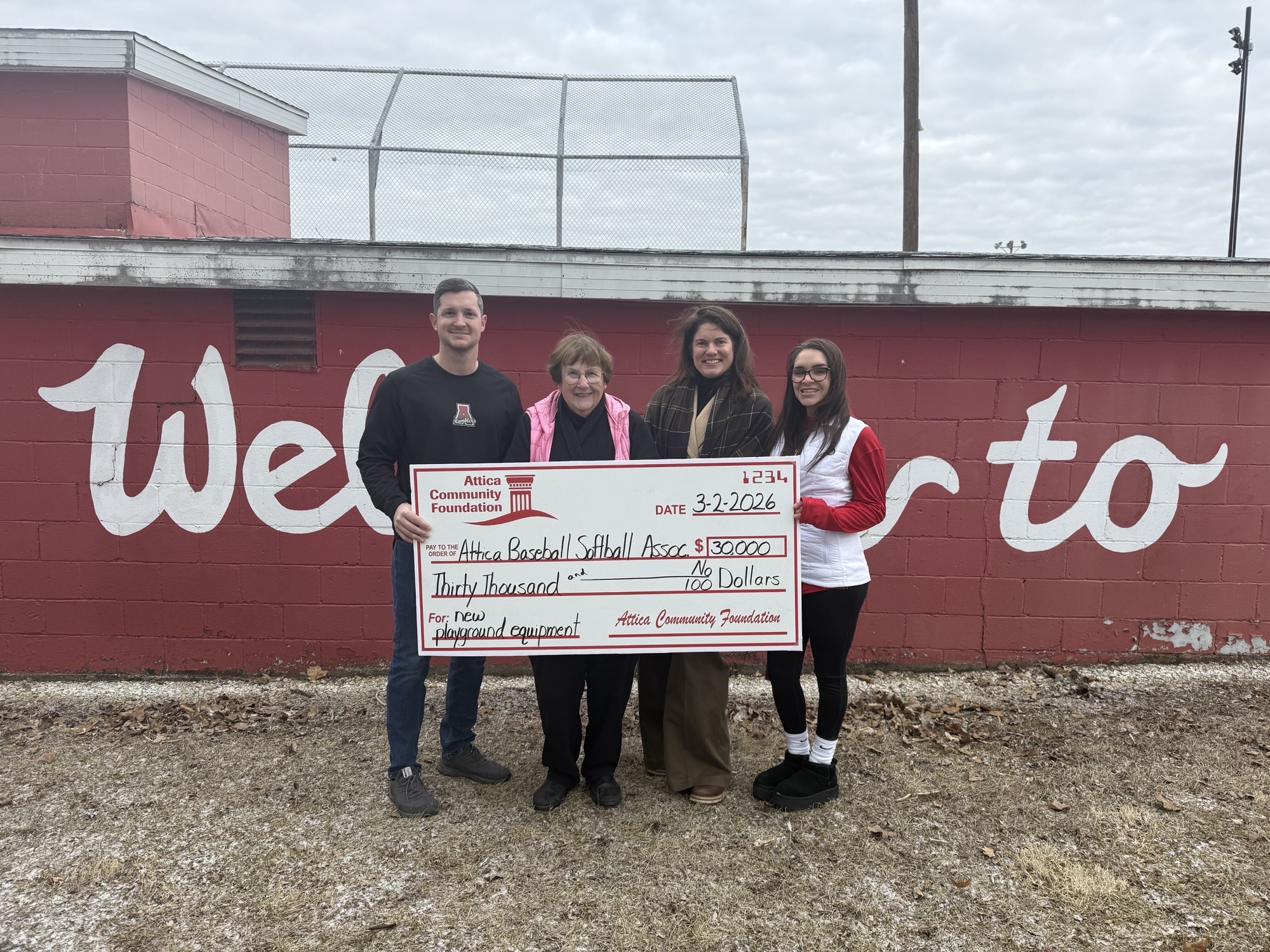 The Attica Community Foundation is pleased to announce a $30,000 grant to the Attica Youth Baseball/Softball Association to install a new playground at the Happy Walter Field youth sports complex. This addition will provide a safe and accessible recreational space for children in the community while their siblings and peers participate in games and practices.
